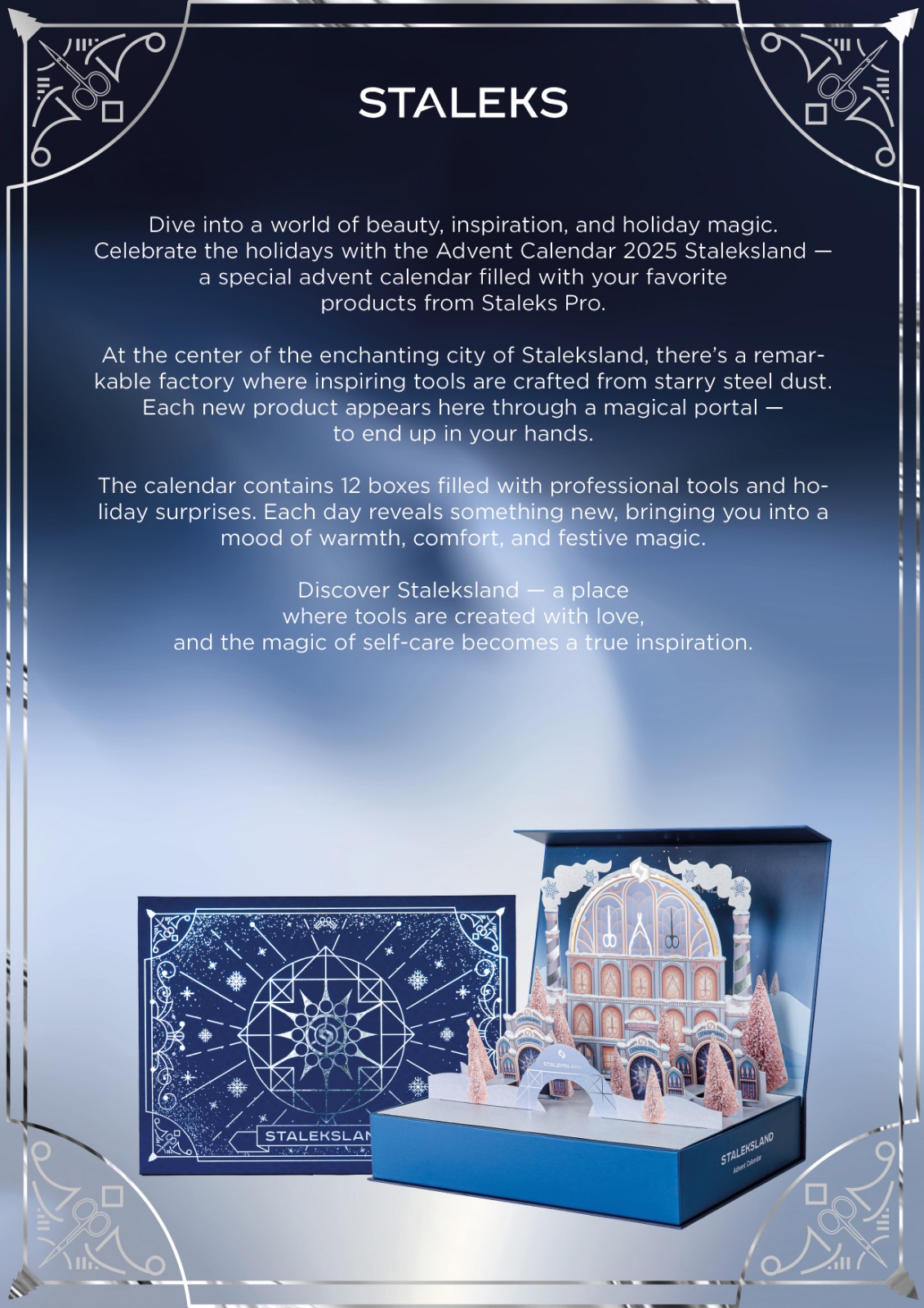Oslavte svátky s Adventním kalendářem 2025 Staleksland, speciálním kalendářem plným vašich oblíbených produktů Staleks Pro.