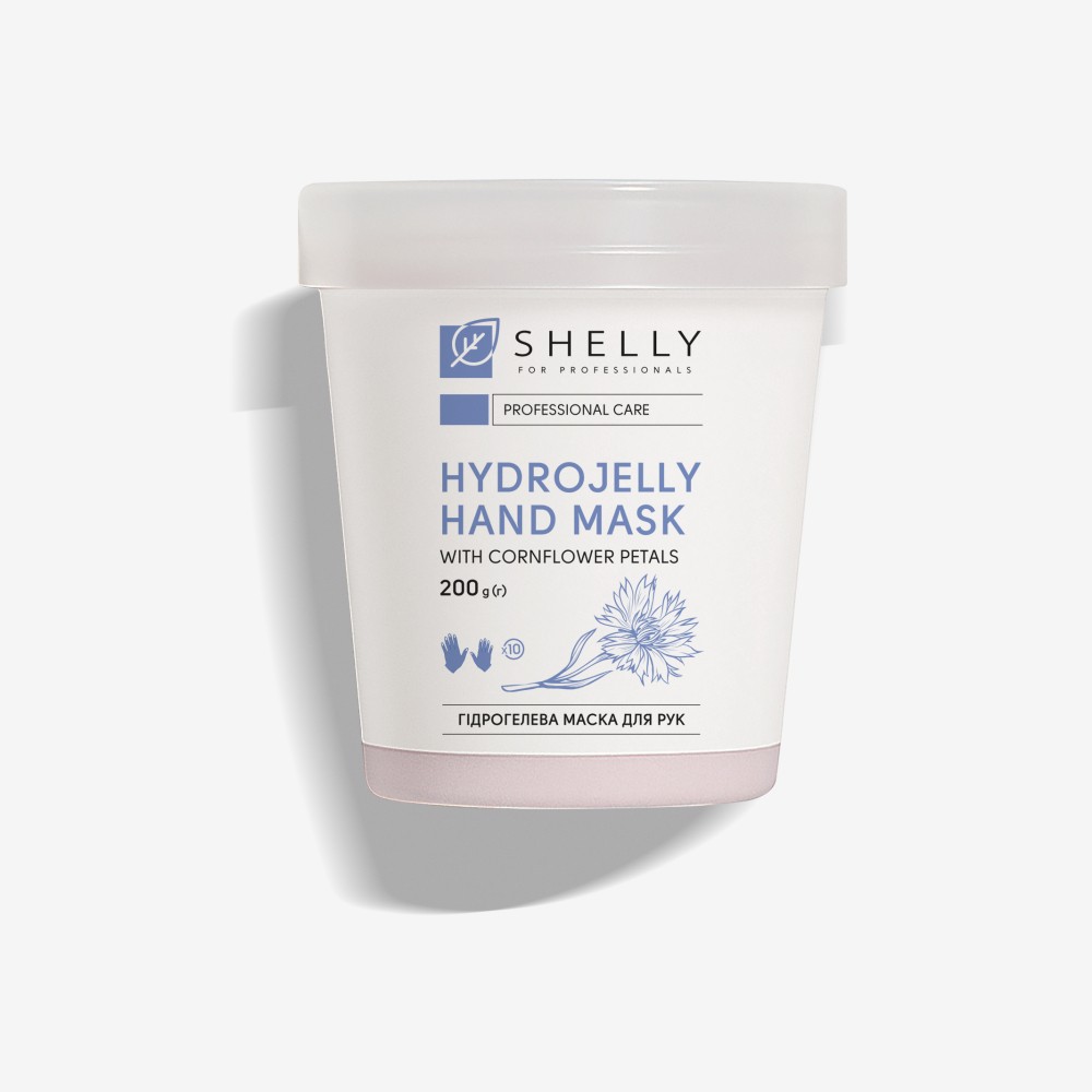 Popis hydrogelové masky na ruce s okvětními lístky chrpy Shelly