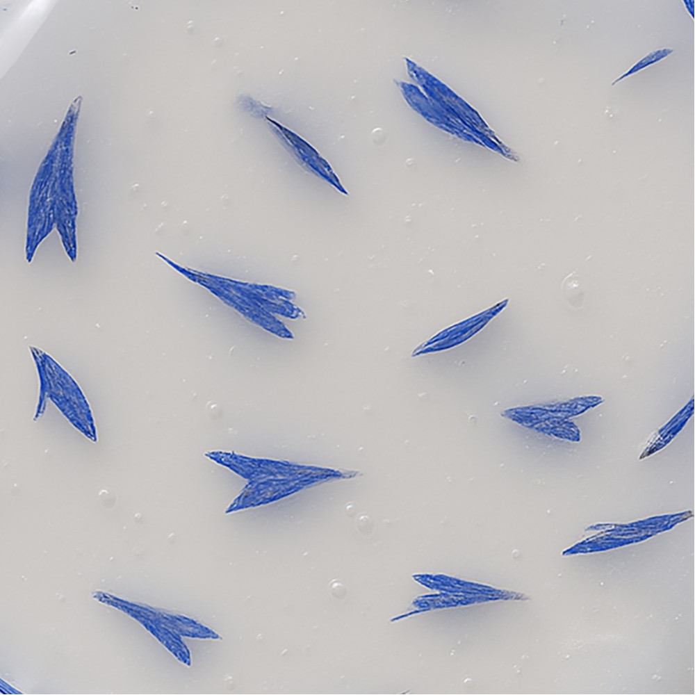Inovativní hydrogelová maska s okvětními lístky chrpy podporuje hydrataci pokožky rukou po dobu až 24 hodin a dodává příjemnou květinovou vůni. Přípravek má formu prášku s okvětními lístky chrpy. Při kontaktu s vodou se mění v homogenní hustou hydrogelovou konzistenci. Maska tuhne a její složky začínají aktivně působit, pronikají do hlubších vrstev epidermis.