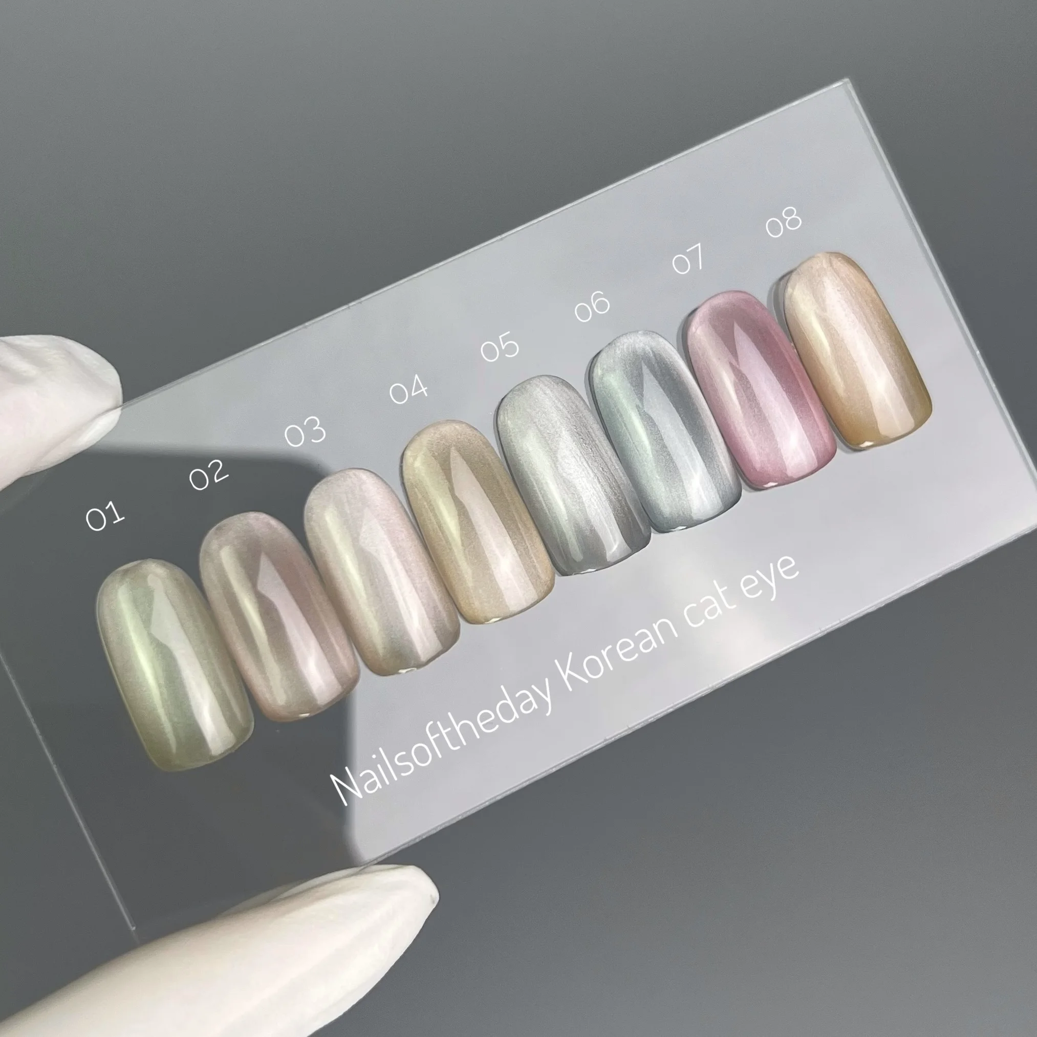 Korean cat eye — skutečné skleněné korejské kočičky, vyvinuté týmem Nailsoftheday. Efekt porcelánových nehtů, poloprůhledné moderní odstíny.