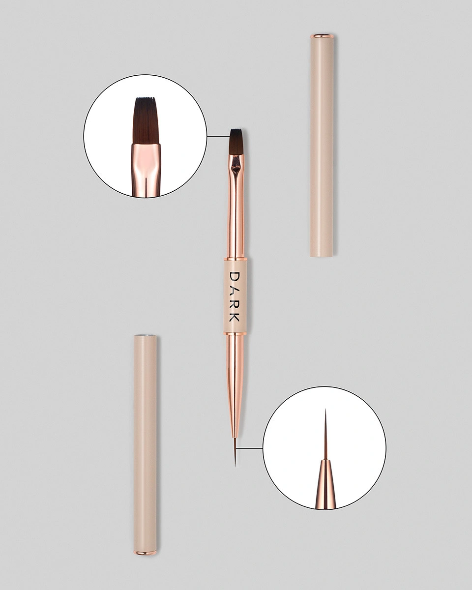 Jedna strana je gelový štětec s plochým řezem o šířce 9 mm pro přesné tvarování okraje a rovnoměrné uhlazení hustých gelů; druhá strana je tenký liner 11 mm pro liniovou práci, design a vytažení koutků.