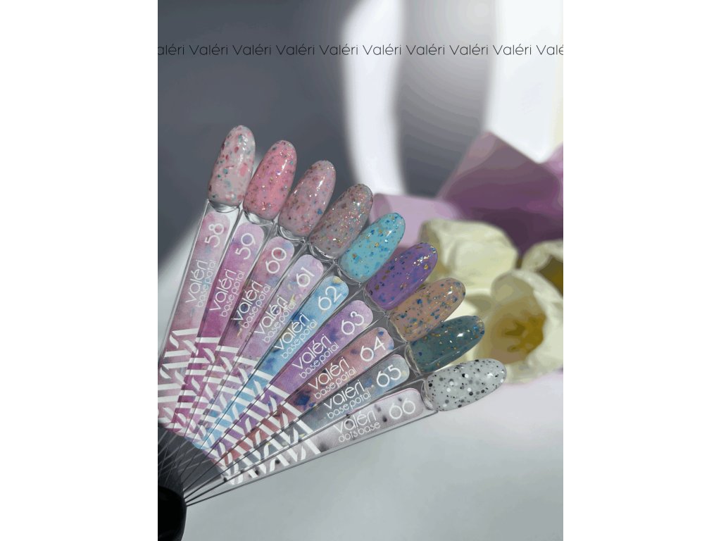 Valeri French base je kolekce kamuflážních a francouzských bází v různých odstínech, texturách a hustotách, od klasicky nádherných po bohaté barvy. Ideální jak pro francouzskou manikúru, tak pro plné krytí. Všechny báze jsou vysoké kvality, dobře pigmentované, snadno se samovyrovnávají a dobře drží díky svým lepivým vlastnostem. Báze jsou univerzální a obsahují gumu, mají střední hustotu (blíže k nižší) a střední tvrdost. Díky vynikající formuli a pigmentaci dobře pokrývají nehtovou ploténku a dobře se vytvrzují v lampě. Perfektně se nosí déle než 21 dní.