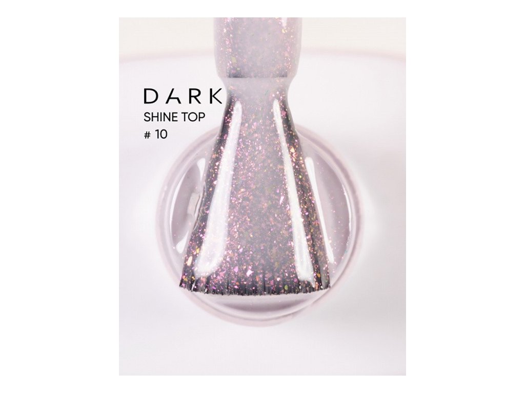 Dark Shine Top 10 – lesklý top s třpytkami bez lepivé vrstvy a s UV filtrem, určený pro gelové a gel-lakové krytí.POPIS: