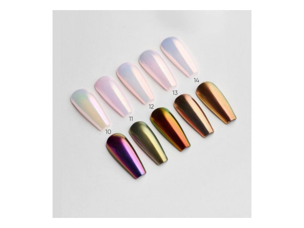 DARK Mirror Powder – pudr pro vytváření různých designů. Vtiřky jsou dostupné v různých odstínech a efektech, což umožňuje dosáhnout různých výsledků v závislosti na podkladu.POPIS:- jemné částečky pudru pro maximální zrcadlový efekt;- 11 trendy odstínů – od jasných metalických až po perleťové odstíny;- vhodné pro světlé i tmavé podklady;- rovnoměrně a snadno se nanášejí;- nevyblednou;- ekonomické použití díky vysoké koncentraci pigmentu.ZPŮSOB POUŽITÍ:1. Proveďte manikúru a standardní přípravu před pokrytím.2. Naneste SCOTCH BASE a základ pro vyrovnání nebo barvu.3. Pokryjte nehet topem bez lepivého vrstvy (lze použít kamuflující topy DARK), sušte v lampě 30 sekund.4. Pomocí nechráněného prstu nebo aplikátoru vmasírujte vtiřku do každého nehtu.5. Pomocí jemného kartáče odstraňte zbytky vtiřky.6. Pilníkem nebo buffem jemně opilujte okraj nehtu pro lepší přilnavost.7. Tenkou vrstvou naneste SCOTCH BASE na spodní polovinu nehtu a upevněte okraj, sušte 60 sekund.8. Naneste top bez lepivého vrstvy a ještě jednou upevněte okraj, sušte 90 sekund. Po aplikaci topu okraj nehtů již nepilujte.NUANCI PŘI PRÁCI:- Nezasychejte top více než 30 sekund před vtiřkou.- Nedoporučujeme nanášet vtiřku v rukavicích, aby se předešlo jemným škrábancům.- Pokud se vtiřka nepřenáší, odmastěte nehet a rychle naneste vtiřku nebo sušte top méně než 30 sekund.- Vtiřku můžete nanášet na barvu nebo na základ/gél po sejmutí lepivého vrstvy (pokud má povrch hladkou strukturu).- Nepoužívejte tvrdý kartáč, aby nedošlo k poškrábání vtiřky.- U ostrých rohů nebo u klientů, kteří aktivně pracují rukama, může být doba nošení vtiřky zkrácena.Buďte první, kdo napíše příspěvek k této položce.