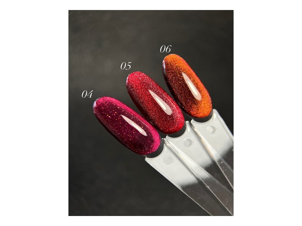 Pro intenzivnější efekt tmavších odstínů doporučujeme podkladovou tmavou vrstvu.Naneste barevný gel lak ve 1–2 vrstvách a vytvořte efekt kočičího oka pomocí magnetu.