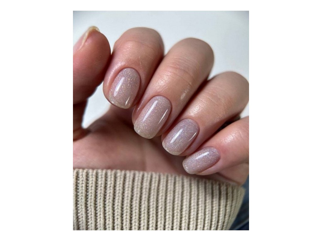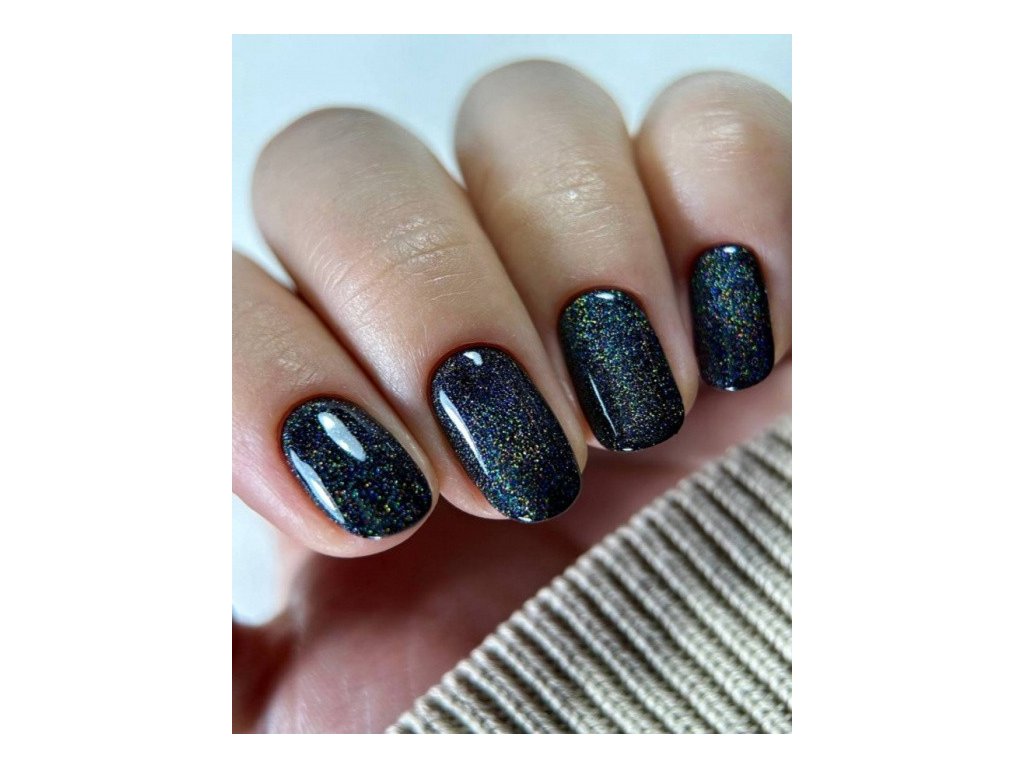 DARK HOLOGRAM TOP is a transparent glossy no-wipe top coat with glitter and a UV filter. It is designed for gel and gel-polish systems. It features a “cat-eye” effect and can be used with a magnet.