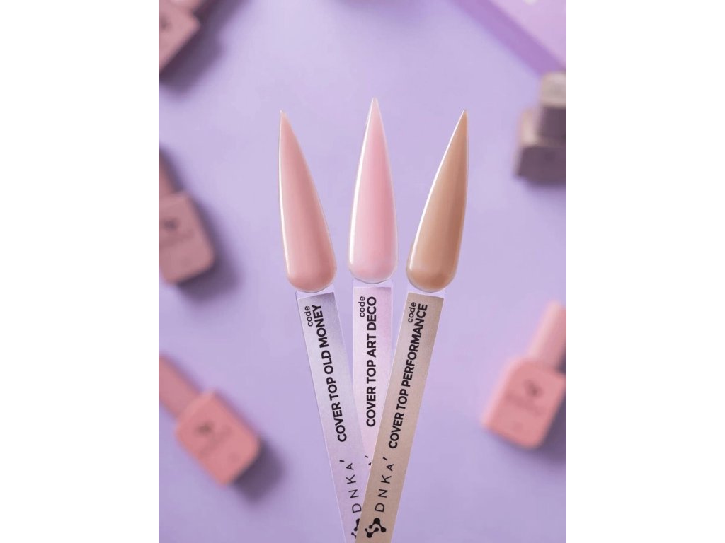 DNKa' Cover Top Coat is a collection of camouflage top coats in soft nude shades with no sticky layer. They perfectly conceal imperfections and unevenness of the nail plate, saving time during manicure. Suitable as a standalone layer or to create depth on nude colors. They have medium consistency, self-level well, provide durability and strength, protect the manicure from damage, and allow for quick and effective creation of a beautiful manicure.