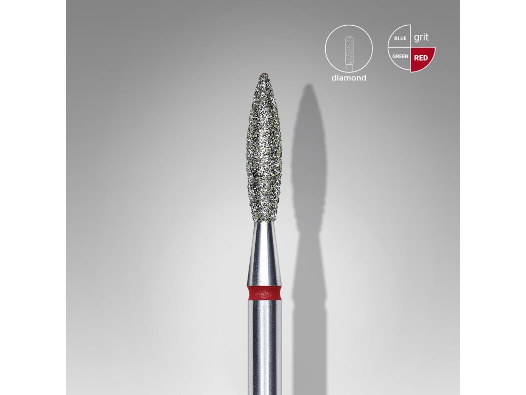 The "flame" shape is intended for working on the cuticle, sidewalls, and smoothing chips without the risk of skin injury.