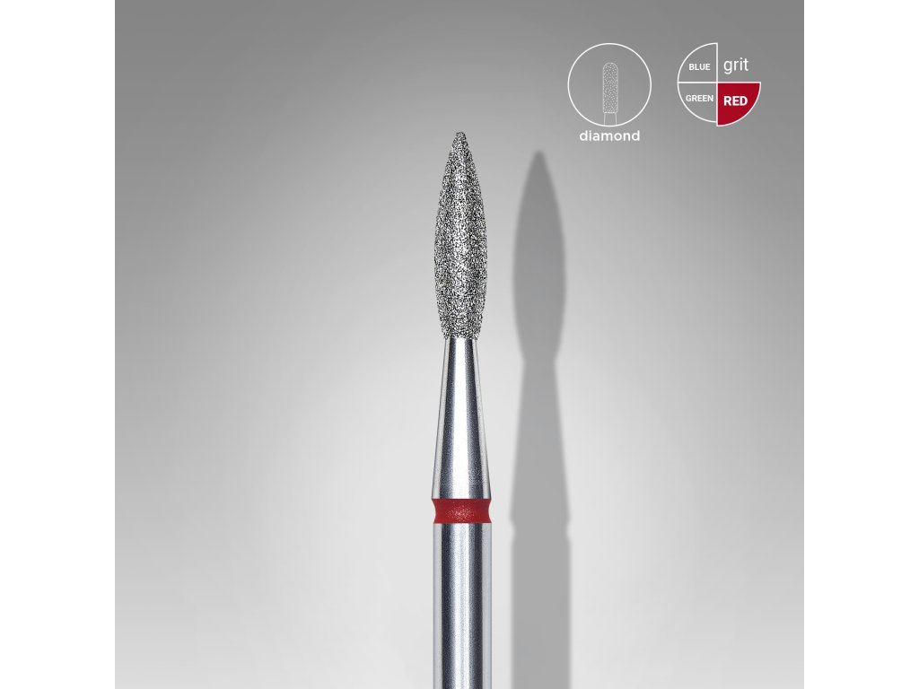 Diamond nail drill bit pointed flame STALEKS EXPERT head diameter 2,1 mm / working part 8 mm - Red