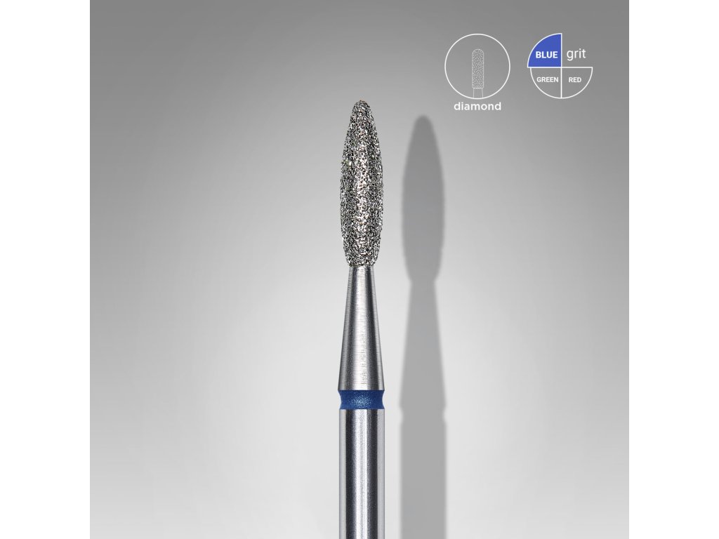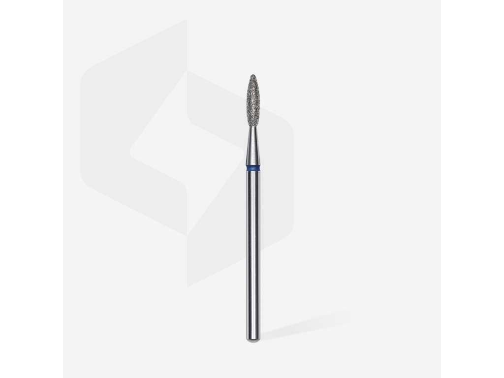 Staleks Diamond Drill Bit - "flame" blue 21mm/8mm - FA10B021/8 is a diamond bit with medium grit in a flame shape, with a diameter of 21mm and a working part length of 8mm. Thanks to the special method of applying the diamond abrasive, the working part of the bit is smooth and without dangerous protrusions. Suitable for treating rougher nail cuticle and skin, lifting and removing the cuticle. Made of high-quality stainless steel.