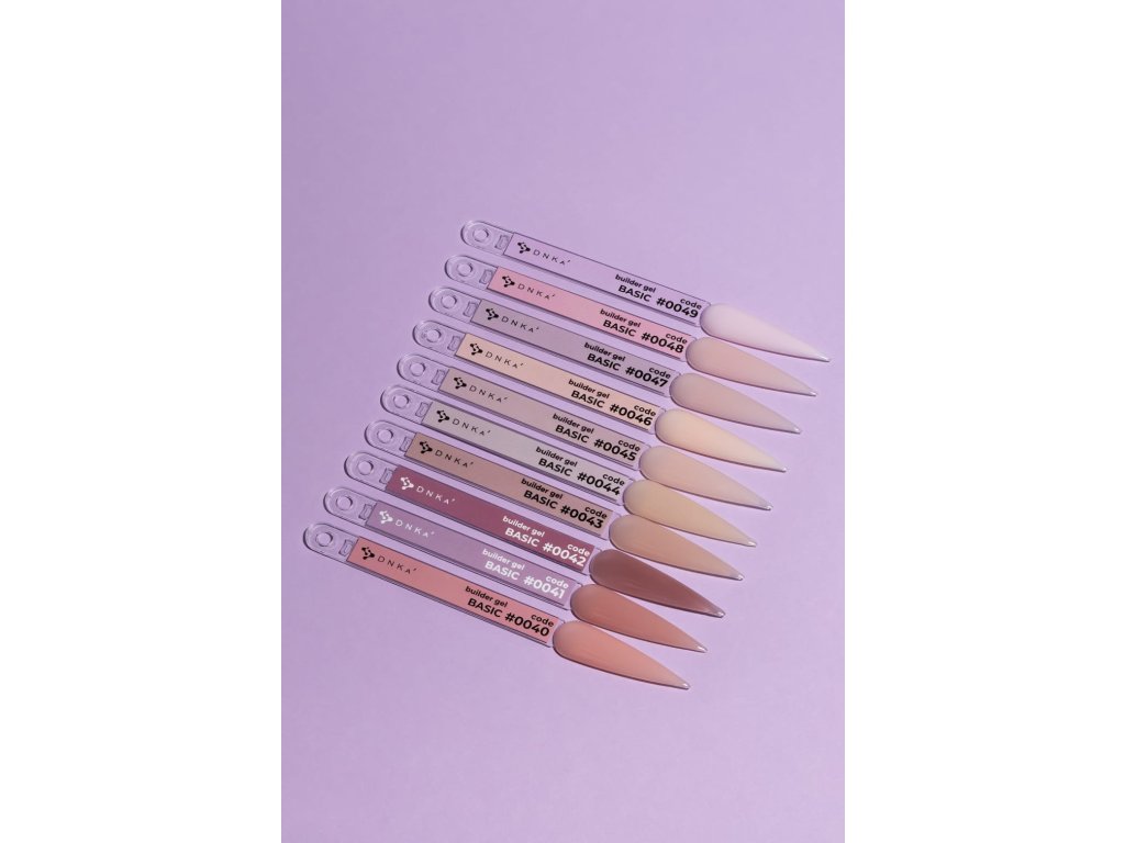 DNKa' Builder Gel is a premium universal modeling gel for low-temperature polymerization. It has a medium consistency, spreads easily, and self-levels. The gel is very convenient to work with and can be used in both one-phase and three-phase systems. Its hard formula allows creating a strong layer, proper nail shape, and perfectly maintains the arch without deforming. It enables work without excessive filing. Suitable for nail extensions on forms, techniques with little or no filing, correction of extensions, nail modeling, and strengthening.