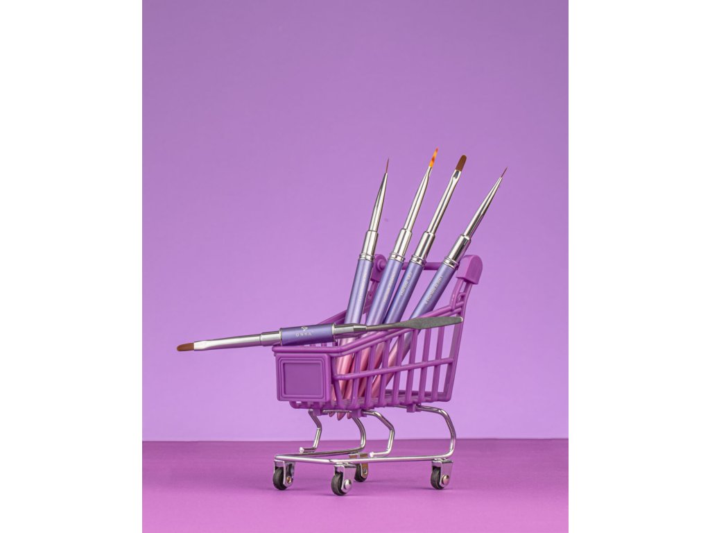 The brushes are designed with all the needs of nail design masters in mind. They have an ergonomic handle that ensures a comfortable grip and precision in every movement, and a protective cap that makes storing the professional tool easier and more pleasant.
