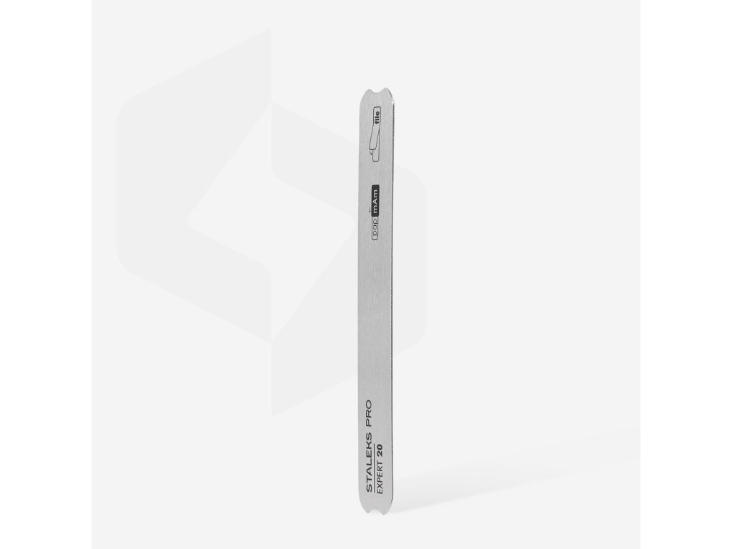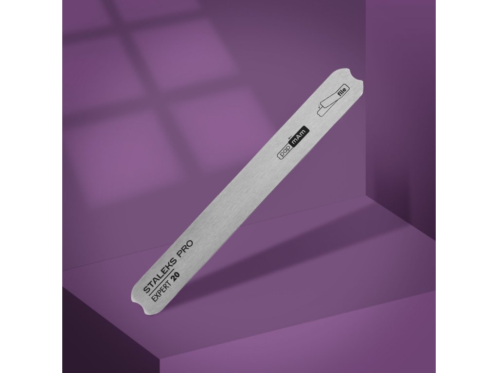 Staleks Expert Metal BASE - base for disposable files MBE-20 straight is made of high-quality stainless steel. It is characterized by high resistance to bending. The file has rounded edges which minimizes the risk of injury to the cuticle around the nail. The biggest advantage is the ability to change the abrasive paper after each client, thereby minimizing the risk of transmitting various infections.