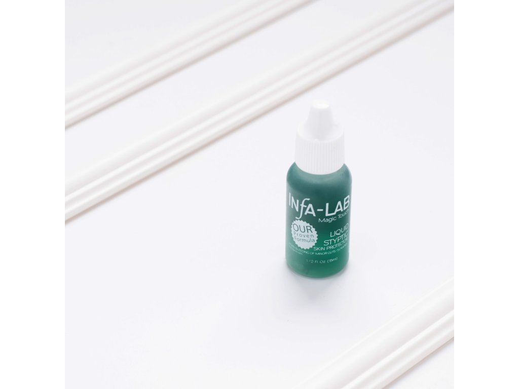Infa-Lab liquid instantly stops bleeding from minor nicks and cuts while simultaneously disinfecting the wound site.