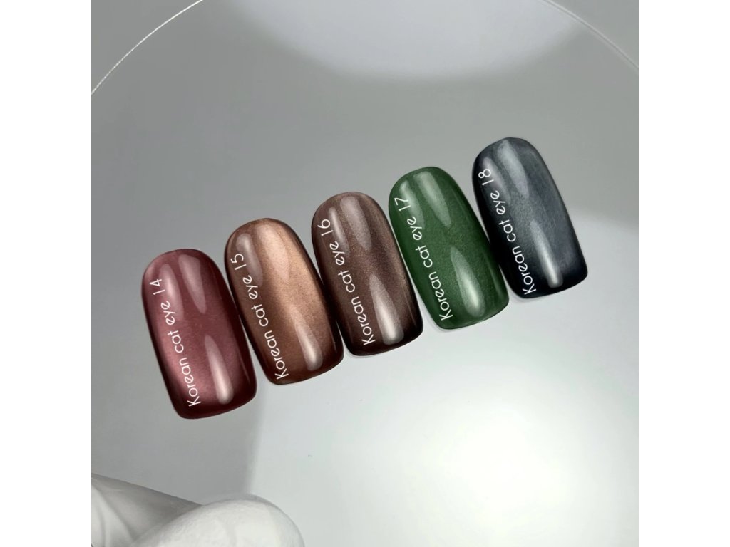 Korean cat eye — real glassy Korean cat eyes, developed by the Nailsoftheday team. Porcelain nail effect, semi-transparent modern shades.