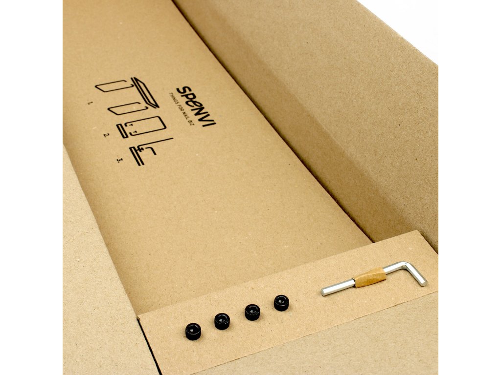 Each support, along with the necessary assembly equipment, is carefully packaged in a cardboard box that ensures protection and safety during transport. Assembly is not demanding and takes a maximum of 3 minutes.