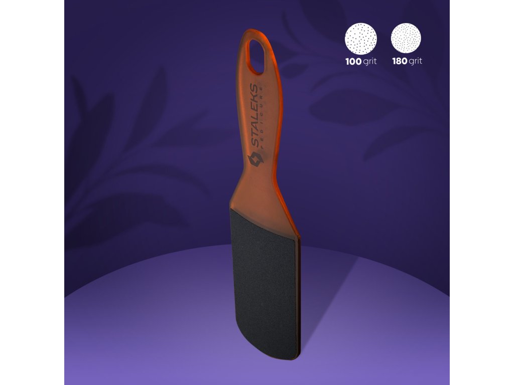 Grit 100/180 – a coarser side for skin with medium hardening, a finer side for smoothing and polishing the skin.