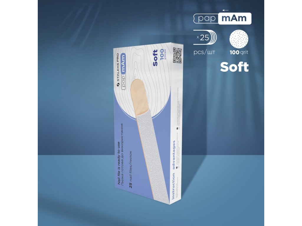 Staleks Expert Disposable Soft Files DWCE-20-100/25 white are disposable files for immediate use without any preparation prior to work. The files are characterized by high-quality abrasive, which allows for high-quality filing of the nail plate. The eco-friendly wooden base Woodpap is made of birch wood, making the nail file lighter and more comfortable to use.