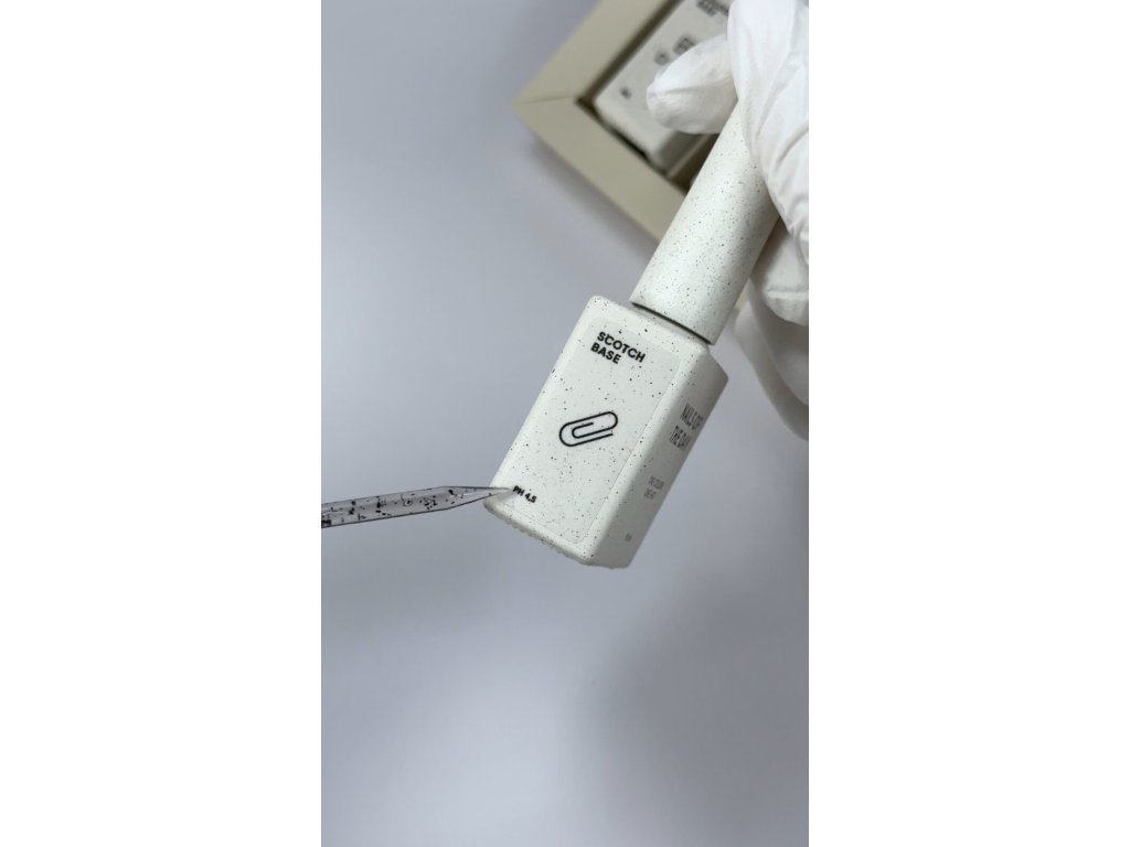 Degrease the nail plate. Apply NAILSOFTHEDAY DEHYDRATOR, then cover the nail with a layer of Scotch Base, spreading it evenly over the entire nail surface.