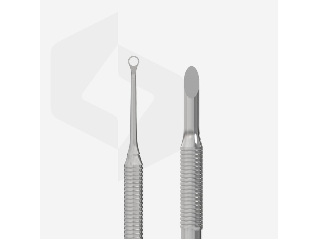 Manicure spatula (beveled pusher + ring) for effective cuticle care.