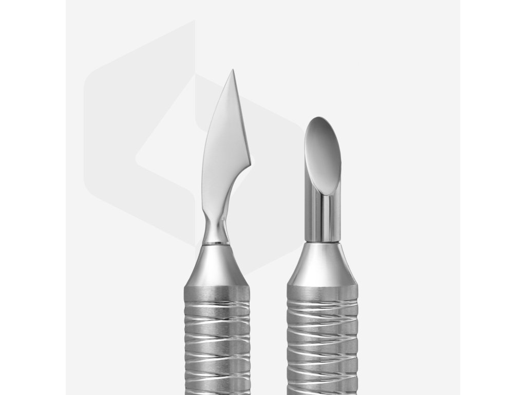 Staleks Expert Nail Cuticle Pusher PE-100/1 is a professional dual-sided pusher with a slanted pusher and a blade for cleaning the nail plate. It is made of high-quality stainless steel.