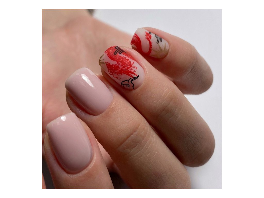 Perform a manicure and apply a base (gel) or color, cure in a lamp.