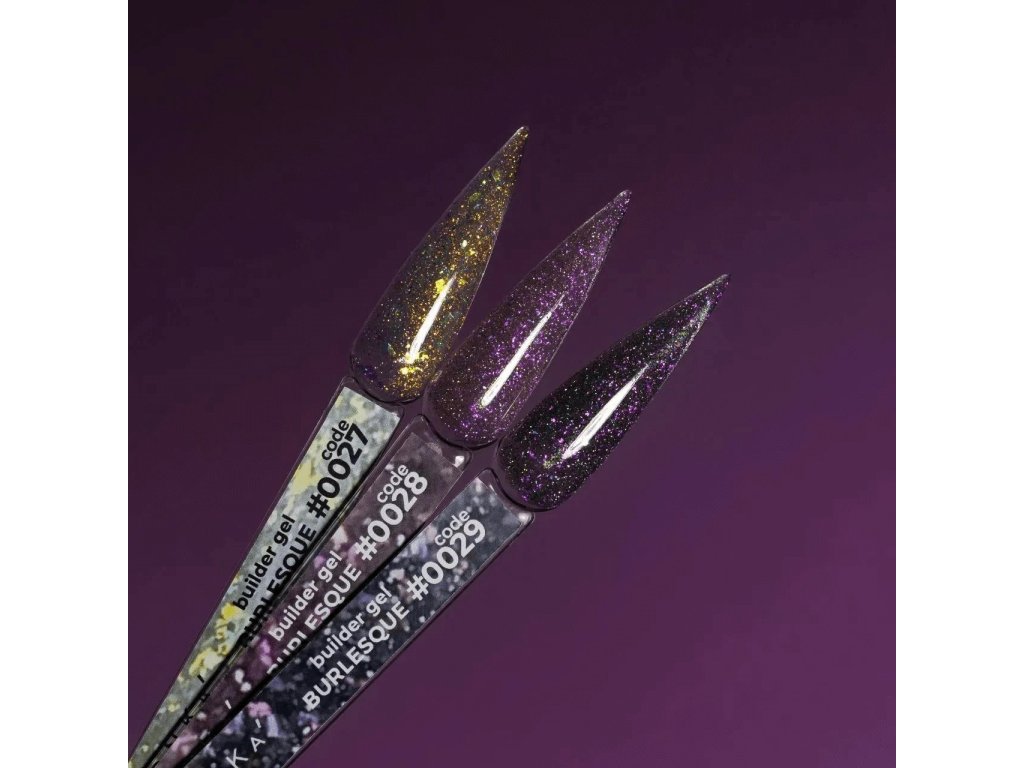 By combining products from the Burlesque collection, you can achieve a unique shade and create a striking design that attracts attention with its shine.