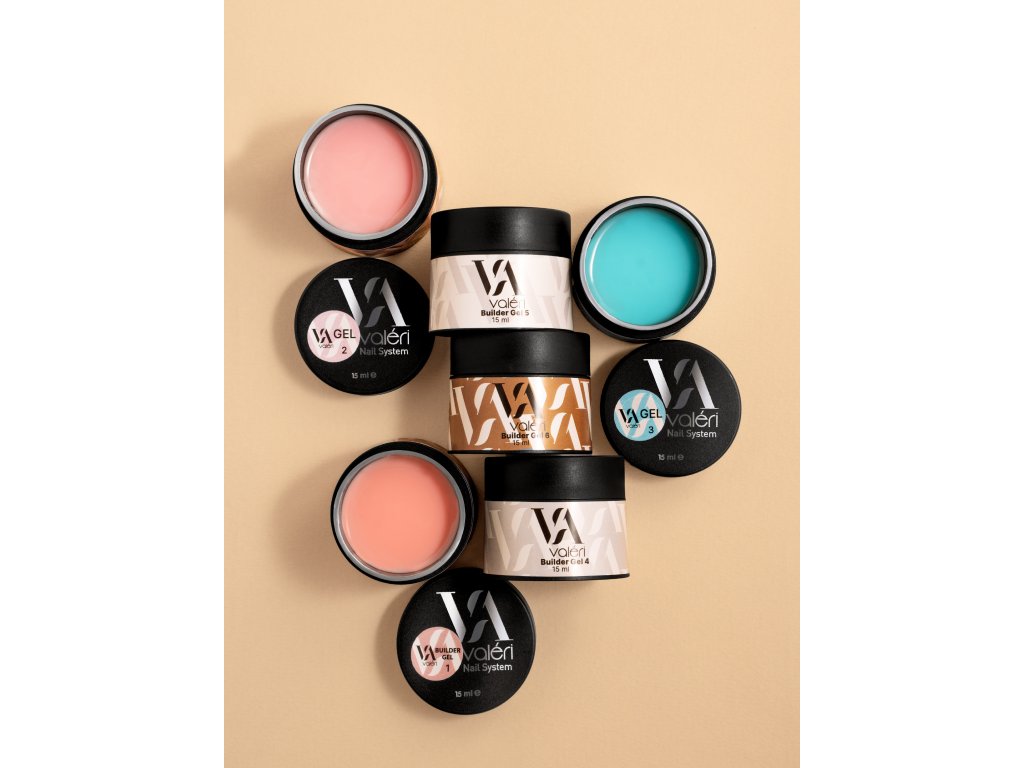 Valeri Gel Collection is a set of five universal gels used both for nail extensions and for correction and strengthening of the nail plate. The gels are low-temperature, firm, and of medium consistency (gels Valeri 3–5 have a slightly thinner consistency), which allows excellent self-leveling without running. Pigmentation is medium. They are easy to apply and maintain the nail arch shape perfectly. Valeri gels can be used in both single-phase and three-phase systems. Thanks to their excellent consistency, they can be applied with a no-file technique or with minimal filing.