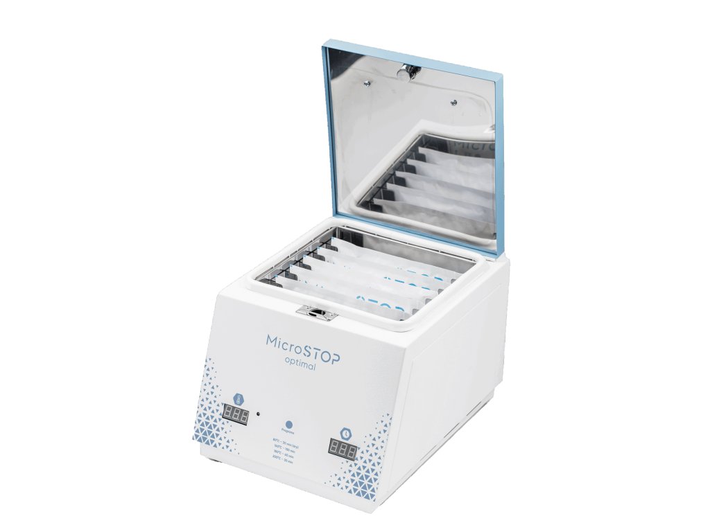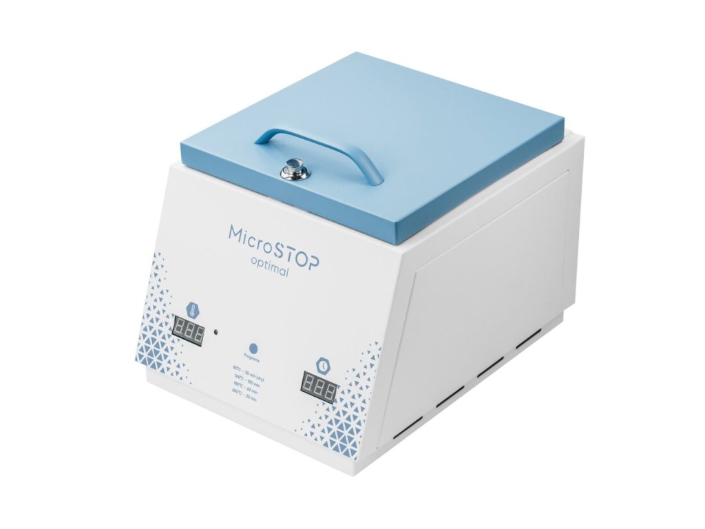 The Microstop Hot Air Sterilizer OPTIMAL can accommodate 3 sets of tools or 5 sterilization bags. Designed for both horizontal and vertical loading. The Microstop Optimal sterilizer is suitable for medium-sized salons – nail salons, tattoo and piercing studios, eyebrow salons, and for estheticians. It can simultaneously sterilize 3 sets of tools without kraft bags or 5 sterilization bags with tools placed vertically in the sterilization chamber. The sterilizer has automatic controls. The digital display of this sterilizer clearly shows the temperature and sterilization time.