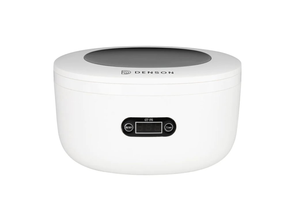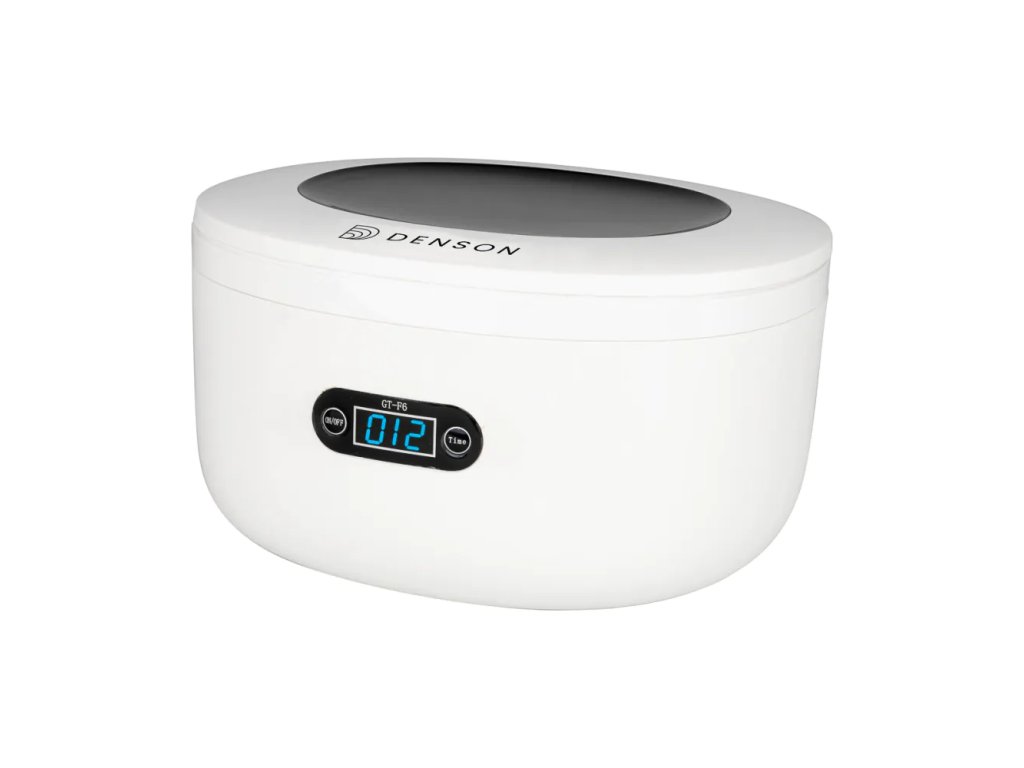 A high-quality, powerful ultrasonic cleaner with a capacity of 750 ml. The chamber contains a plastic basket where accessories intended for washing or disinfection are placed. It features a new intelligent touch panel with two touch buttons for different functions and a digital display showing the operating time.