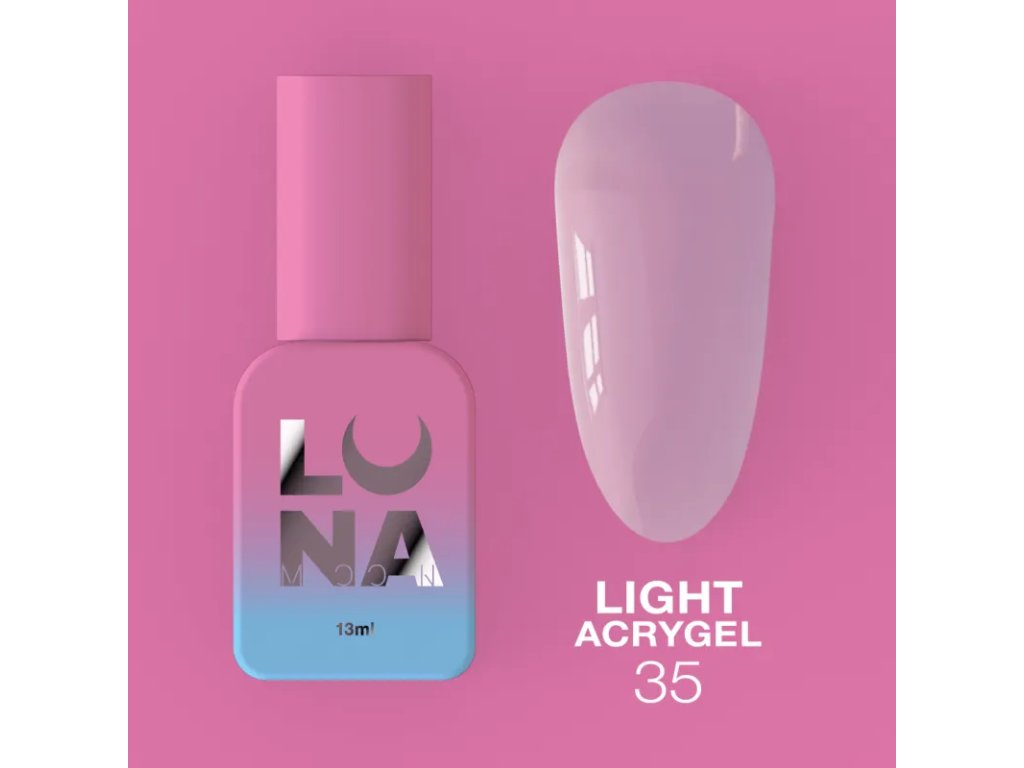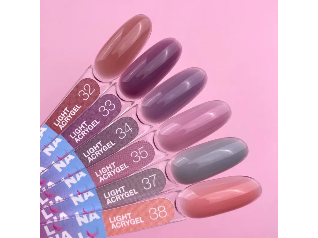 LIGHT ACRYGEL Liquid Gel – an innovative material for strengthening, leveling, and extending nails. It is a combination of polygel and base. Contains 60–80% acrylic copolymer (the main component of polygel) and a smaller amount of hydroxyethyl methacrylate HEMA (approximately 20–30%), the main component of base coats. This gel can completely replace a base.