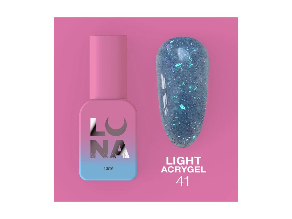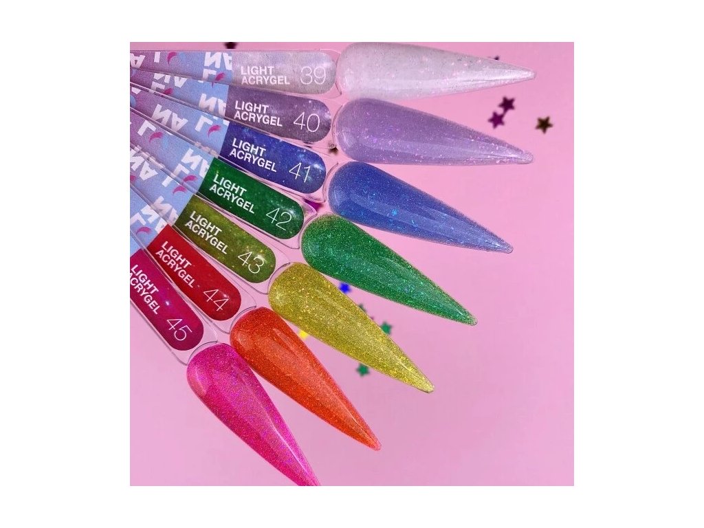 LIGHT ACRYGEL Liquid Gel – an innovative material for strengthening, leveling, and extending nails. It is a combination of polygel and base. Contains 60–80% acrylic copolymer (the main component of polygel) and a smaller amount of hydroxyethyl methacrylate HEMA (approximately 20–30%), the main component of base coats. This gel can completely replace a base.