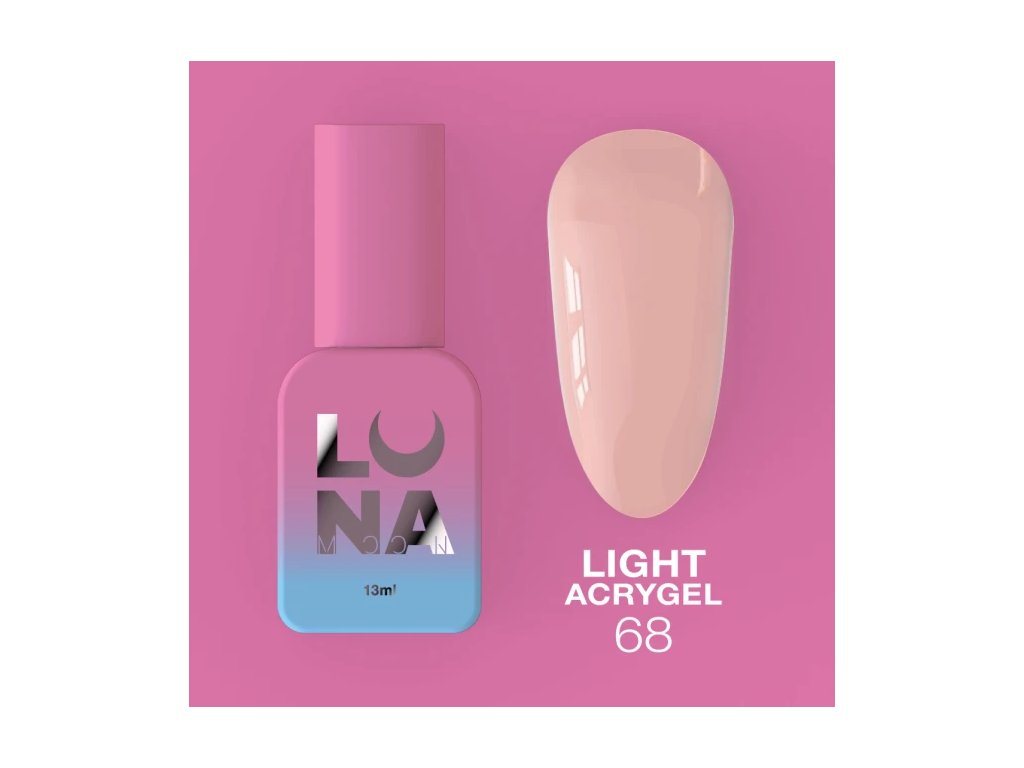 LIGHT ACRYGEL Liquid Gel – an innovative material for strengthening, leveling, and extending nails. It is a combination of polygel and base. Contains 60–80% acrylic copolymer (the main component of polygel) and a smaller amount of hydroxyethyl methacrylate HEMA (approximately 20–30%), the main component of base coats. This gel can completely replace a base.