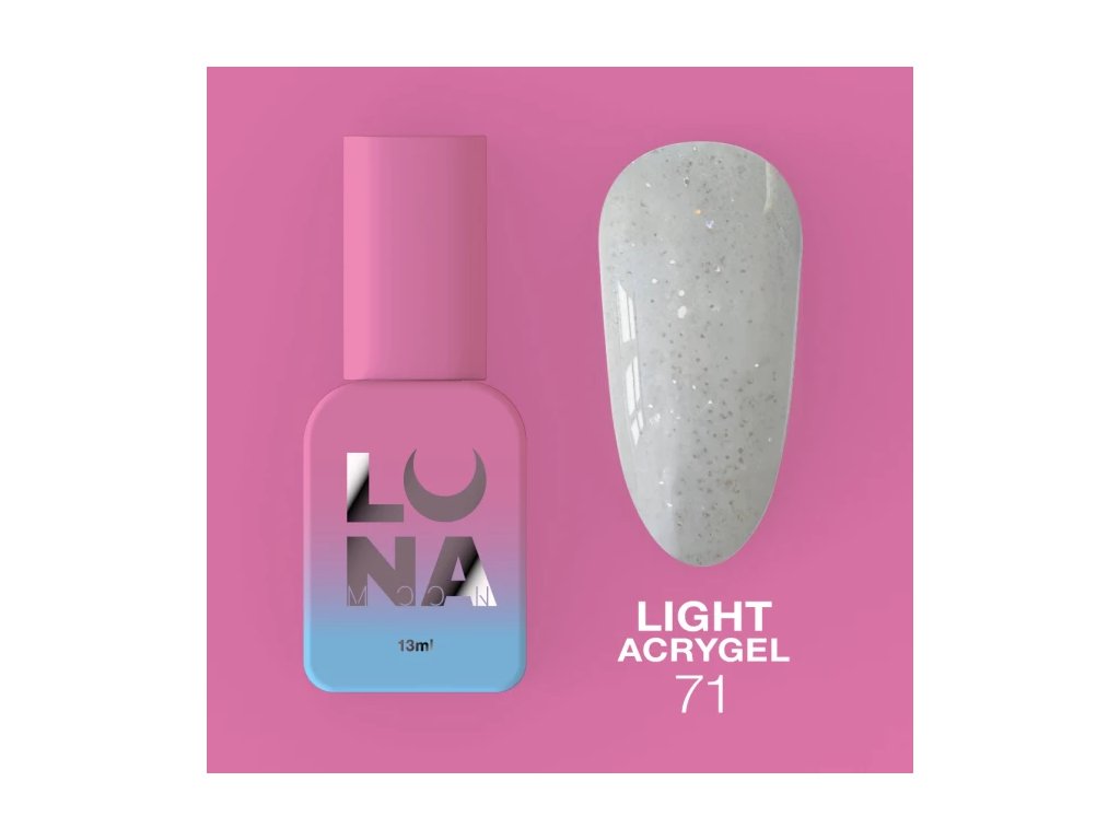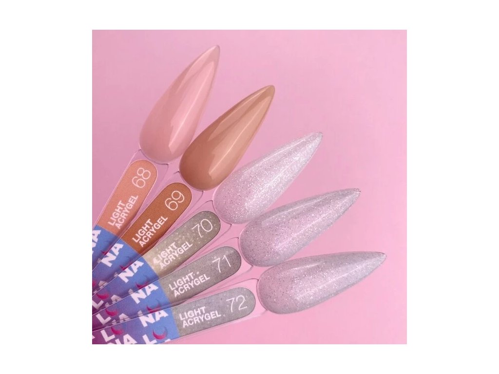 LIGHT ACRYGEL Liquid Gel – an innovative material for strengthening, leveling, and extending nails. It is a combination of polygel and base. Contains 60–80% acrylic copolymer (the main component of polygel) and a smaller amount of hydroxyethyl methacrylate HEMA (approximately 20–30%), the main component of base coats. This gel can completely replace a base.