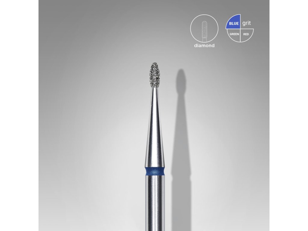 Diamantový brusný nástavec na nehty – zaoblený pupen, modrý, EXPERT Průměr hlavy: 1,2 mm / pracovní