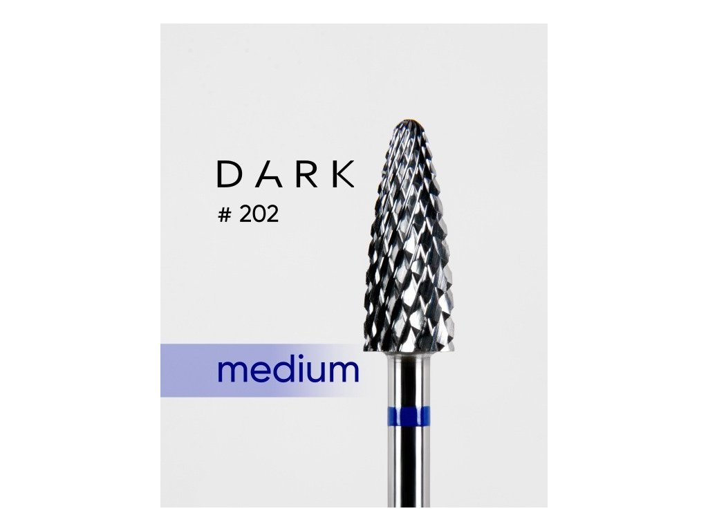 TVRDOKOVOVÉ FREZY DARK – určeny pro odstranění povrchových vrstev a pilování přírodních nehtů, frezy výborně snášejí všechny druhy sterilizace.TVRDOKOVOVÁ FREZA 202:- tvar – zaoblený kužel;- průměr – 5 mm;- abrazivita – modrá/střední tvrdost;URČENA PRO:1. Odstranění gelového nebo akrylového povrchu z nehtové ploténky.2. Korekci umělých nehtů.3. Pilování odchlipů.4. Díky tvaru „zaoblený kužel“ a univerzální abrazivitě je freza ideální pro práci s jakýmkoli povrchem a odstraňuje materiál jemně a plynule.Doplňkové parametry