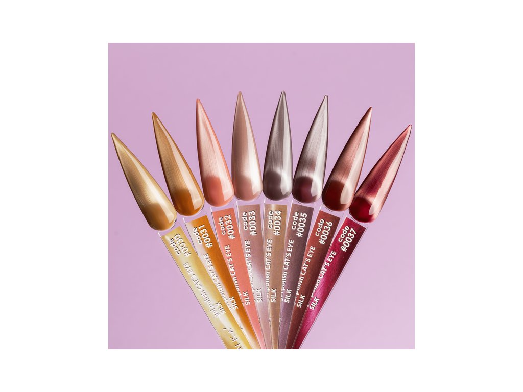 Odstíny z kolekce Cat’s Eye Silk reagují na magnet a zároveň si dokonale zachovávají vytvořený efekt až do polymerizace. Díky tomu můžete snadno tvořit originální vzory a trendy designy.