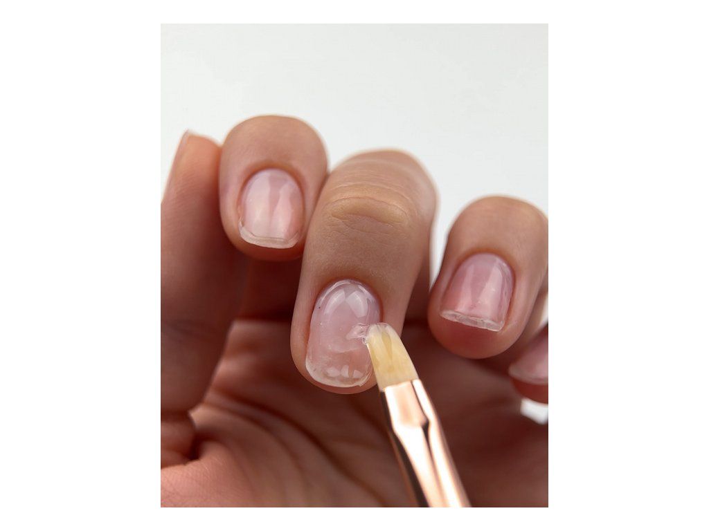 Při zpevňování nehtů vždy z vnitřní strany opilujte přírodní nehet alespoň o 1 mm, abyste předešli odchlipování na volném okraji;