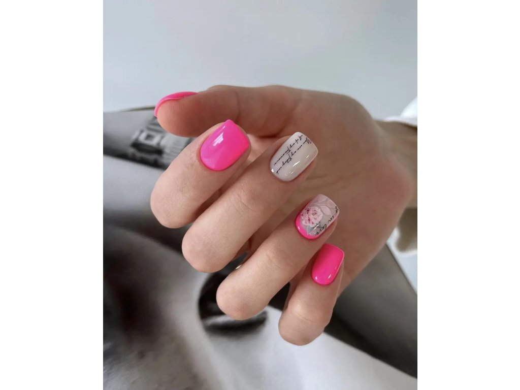 Opatrně přeneste na nehet a uhlaďte pomocí silikonového nástroje nebo prstu. Vyrovnejte případné bublinky.Zafixujte top coatem: