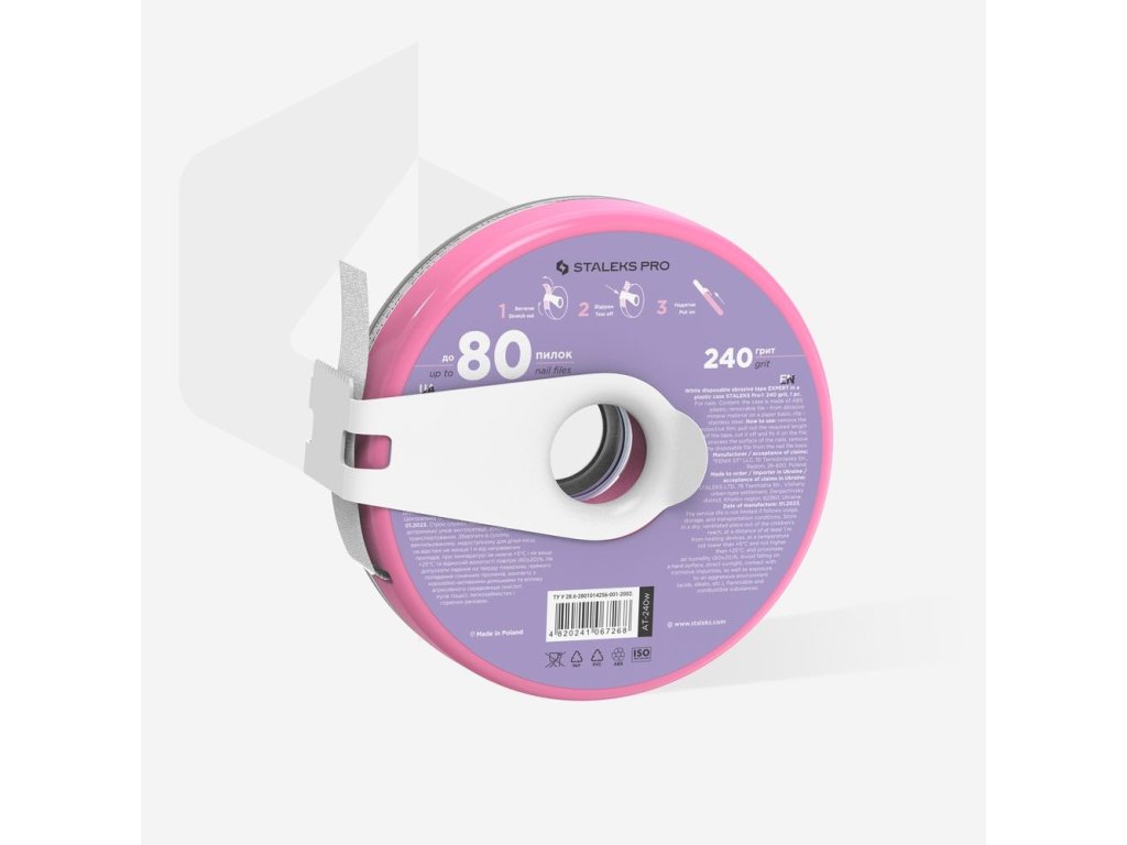 Staleks Expert jednorázové pilníky AT-240 bílé jsou vyměnitelné jednorázové pilníky ve formě pásky v bílé barvě v plastovém pouzdře, které chrání pásku před nečistotami a poškozením. Délka jednorázové pásky je 7m. Brusná páska se díky speciální sponě na pouzdře jednoduše odtrhne.- vyměnitelné, jednorázové pilníky ve formě pásky v plastovém obalu