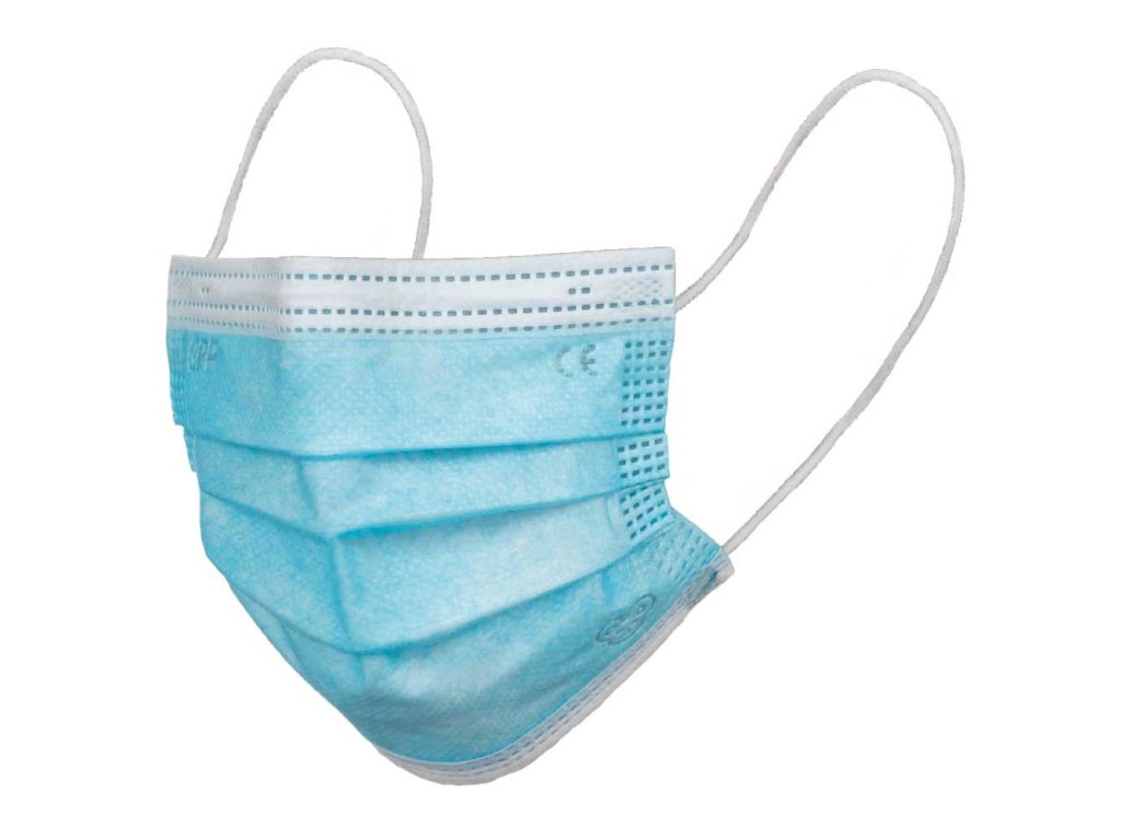 Třívrstvá jednorázová zdravotnická rouška typu IIR splňující požadavky normy EN 14683:2019+AC:2019.