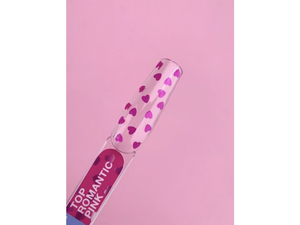 Top Romantic je dekorativní vrchní gelový top se srdíčky, bez lepivé vrstvy, který dokonale ladí s jakoukoli barvou gel laku. Dodá manikúře romantický, hravý a originální vzhled a promění i jednoduchý design v něco výjimečného.