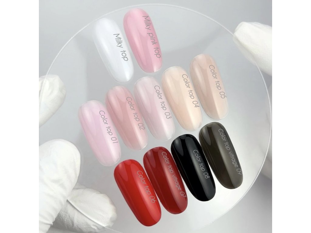Nailsoftheday Color Top jsou stylové nude odstíny kamuflážních topů vytvořené týmem Nailsoftheday. Poskytují dokonalý vysoký lesk a přirozený efekt bez nutnosti použití barevného gel laku.